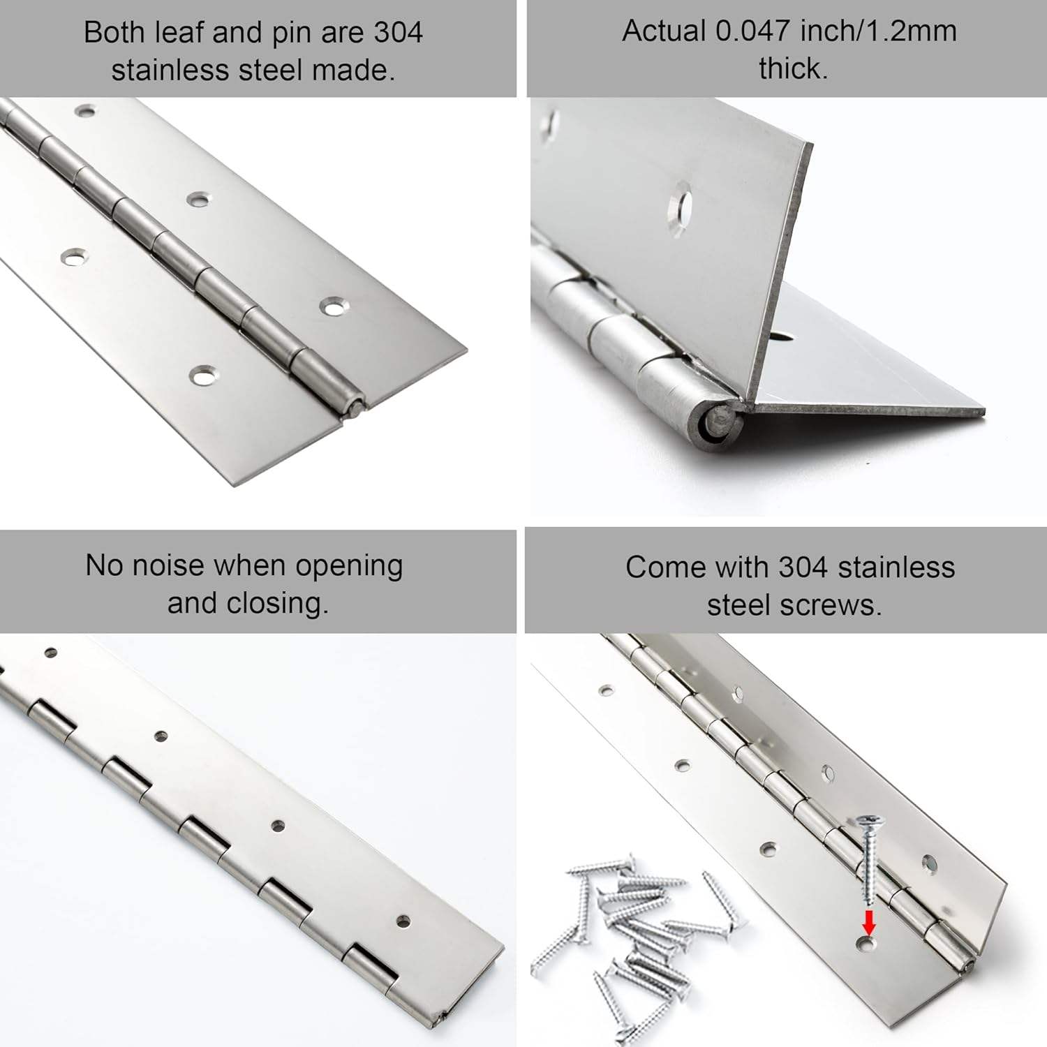Quality-assured customized stainless steel and aluminum piano hinges for cabinets and furniture applications.