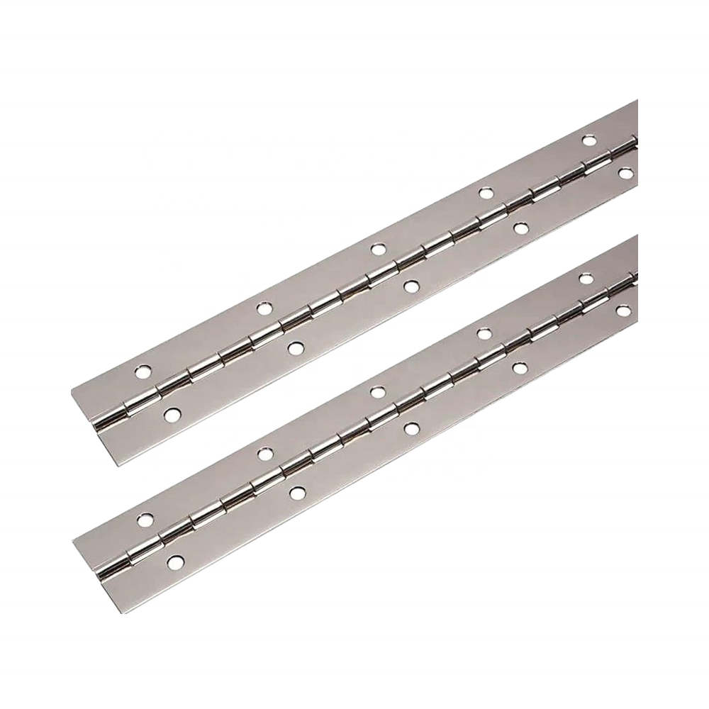 High-quality stainless steel 12-inch continuous hinges with 24 screws, suitable for boats, storage boxes, and furniture applications.